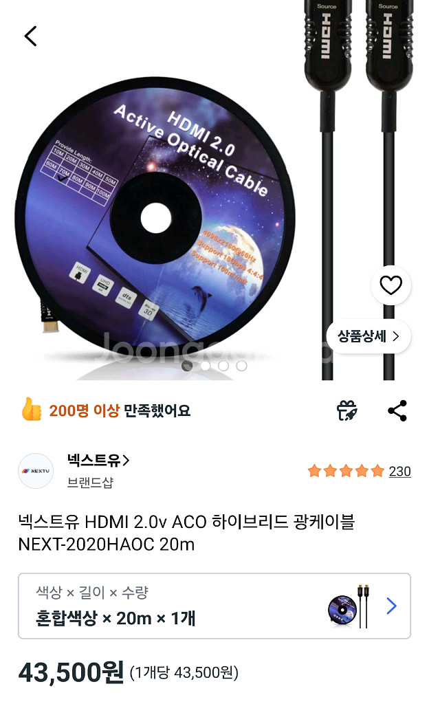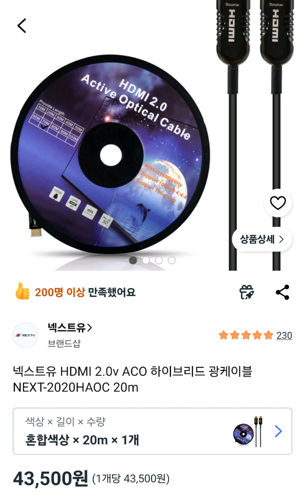 넥스투 HDMI 2.0 AOC 하이브리드 광케이블 20M 제품이에요 4K HDR, 3840x2160 60Hz 해상도를 지원하며 ARC, CEC/HDCP 2.2 기능까지 갖췄어요 광신호와 구리선을 결합한 하이브리드 구조로 신호 손실 없이 안정적인 전송이 가능해요 문서, 영상 작업 하시는 분들에게 추천드리는 가성비 있는 케이블이에요 앞뒤가 있으니 안나오면 거꾸로끼면 나와요 직거래)금천구 벚꽃로 40 금천롯데캐슬골드파크1차 101동 정문앞 *제품 불량시 환불* (당근페이/안전 결제가능) (택배4000원)