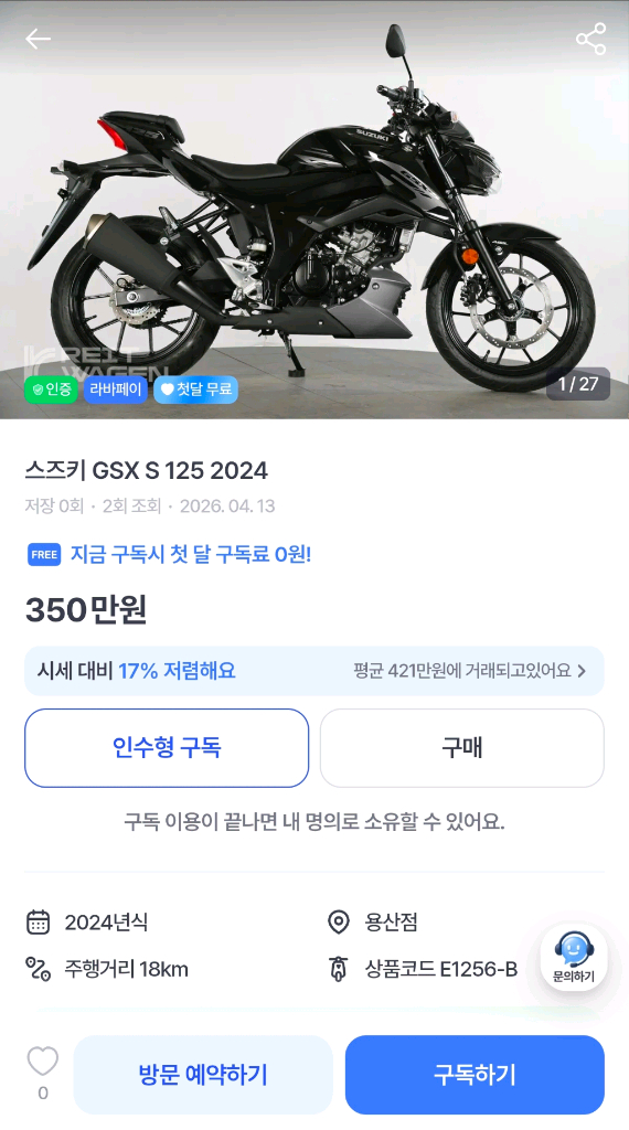 개인정보(거래정보)를 주고받는 행위는 사기에 노출될 수 있으므로 즉시 중고나라로 신고해 주세요라이트바겐 위탁판매 올려놨습니다 바이크 입문한다고 샀는데 사고현장 보고 무서워서 그냥 판매합니다 25년 11월에 490만원 주고 신차 구매했고 겨울이라 지하주차장에서만 조금 탔습니다 라이트바겐에 올려놨으니 매물 구경 부탁드립니다 완전 신차급입니다