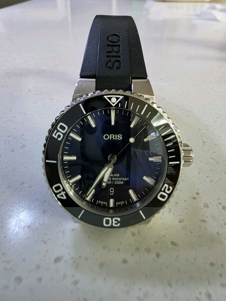 오리스 아퀴스 데이트 딥블루 러버밴드 01 733 7730 4135 -07 424 65EB 무브먼트 :오리스 Calibre 733 리저브 타임 :38시간 크기 :43,5 mm 밴드폭 (러그) :24mm 방수 :300m 특징:딥블루 선레이 다이얼,세라믹베젤,러버밴드 야광,스크류용두 ※ 거래장소 :석바위 가정법원앞 시간 : 평일 오후 6시 이후 주말 :협의 가격 : 120만 택배시 무료배송...노리턴조건 컨디션 좋습니다 24년 8월 면세점에서 구매 ~~풀박스 ,보증서 등록 3년 버클 생활스크래치외 시계자체 찍힘기스 없음 편하게 채팅주세요