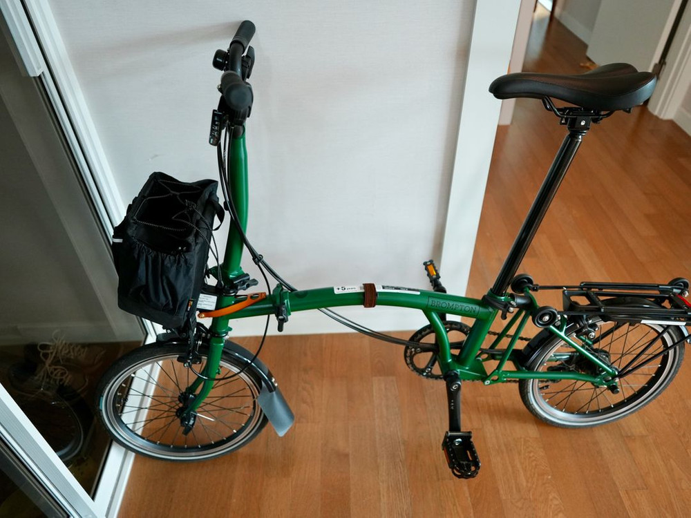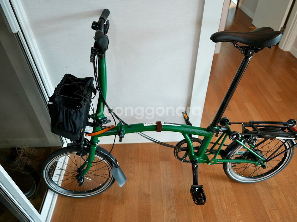 24년식 레이싱 그린 브롬톤 C라인 M6R 입니다. 사진에서 보이는 것처럼 깔끔하게 관리된 제품입니다 충돌, 사고로 인한 파손, 기스 없고 수리이력 없어요. 그 외 실사용으로 인한 생활기스는 있을 수 있습니다. 사진에 있는 프론트백, 라이트, 가죽소품은 제외입니다.