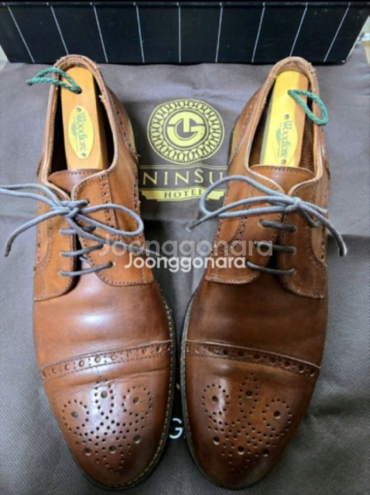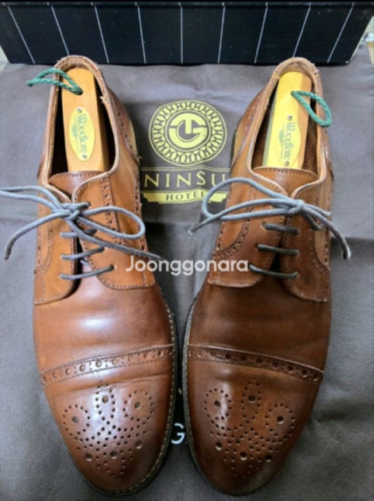 🇮🇹 David & Joan 브라운 옥스포드 슈즈 (Hand Made in Italy / US 9.5 사이즈) 270~275mm 미국 보스턴의 쇼핑 명소인 Copley Place 내 Neiman Marcus 백화점에서 직접 구매한 **David & Joan (Joan & David Halpern)**의 이탈리아 핸드메이드 클래식 수제화입니다. 보스턴 매장 구매가 $650 (현재 95만원) 바닥창은 압구정동 명동사에서 5만원 주고 미끄럼 방지 및 가죽 밑창 보강 완료 했습니다. 힐 및 아웃솔 모두 교체 필요 없음. 관리 잘 되어 있습니다. 사용감 감안해서 가격 책정했어요. 그래도 예민하신분은 Pass ~ 우체국 택배로 발송 합니다. 택배비는 제가 부담합니다. * 브랜드 창립자 Joan & David Halpern 부부는 1960년대 보스턴에서 패션 하우스를 설립해 “편안함과 세련미를 결합한 럭셔리 수제화”로 세계적 인정을 받았습니다. 모든 제품은 이탈리아 장인이 수작업으로 제작했으며, 당시 보스턴과 뉴욕 상류층 사이에서 큰 인기를 얻었습니다. 원래는 남성 수제화 라인이 유명했지만, 창립자 Joan Halpern이 사망한 이후 현재는 여성화 중심 브랜드로 재편되어 남성 수제화 모델은 완전히 단종된 상태입니다. David & Joan의 남성 수제화는 창립자 부부 시절에만 존재했던 고급 수공예 라인으로, 현재는 생산 중단되어 구하기 매우 어렵습니다. ✔ 디자인 특징 클래식한 캡토(Cap-Toe) 브로그 펀칭 디테일 정교한 수제 스티치 / 깊은 브라운 가죽톤 힐 라인 가죽 적층 마감으로 안정감 우수 수트·셋업·캐주얼 모두 어울리는 밸런스 ✔ 제품 정보 브랜드: David & Joan (Joan & David Halpern) 제조국: Hand Made in Italy (이탈리아 수제화) 사이즈: 9.5 (한국 약 270~275 mm) 소재: 천연 소가죽 / 클래식 브라운 컬러 구매처: 미국 보스턴 Copley Place 내 Neiman Marcus 백화점 Ermenegildo Zegna 슈박스에 넣어서 보내드릴께요. 8~9번 사진의 Woodlore 시더 슈트리는 ( Made in USA ) 별도 판매품 입니다. (추가금 3만원)