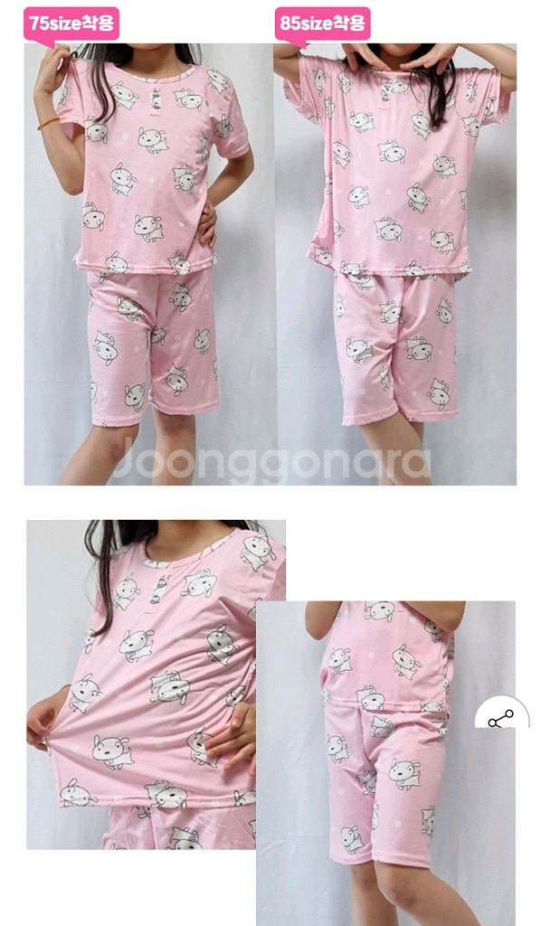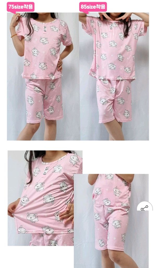 흰둥이 반팔 잠옷세트 85호+여름파자마 중사이즈 2장(일괄판매) 1. 흰둥이 반팔 잠옷세트 85호 구매사이트에서 참고하시라고 사진과 사이즈표 퍼왔습니다. 10~11세 2. 여름파자마 중사이즈 2장 코키리와 올빼미 입니다. 7~9세 정도 일괄판매합니다. 한두번 입어서 상태 좋아요. 예민하신분, 환불 요청 정중히 사양합니다.