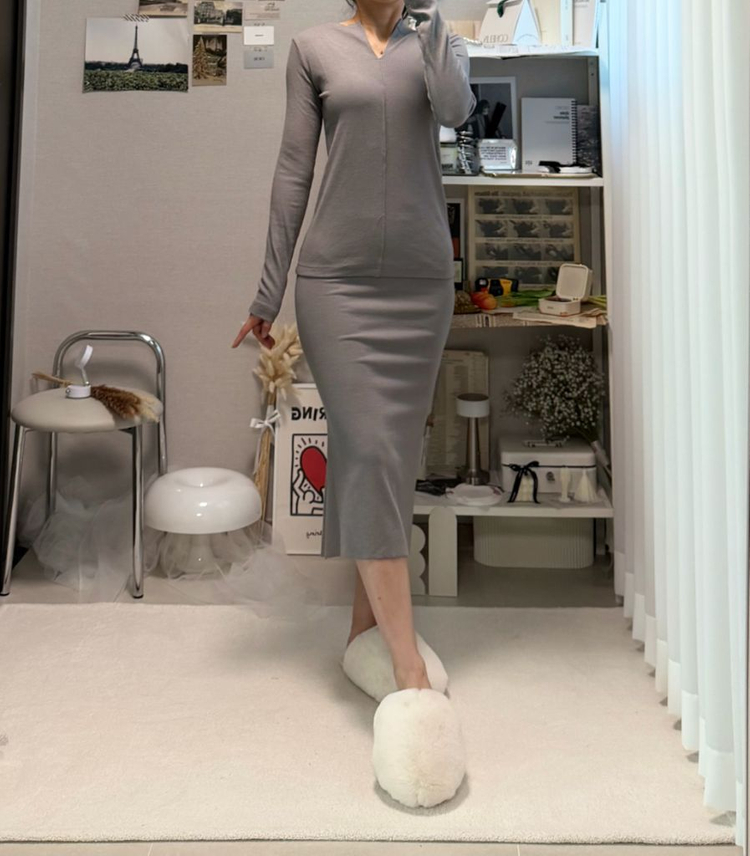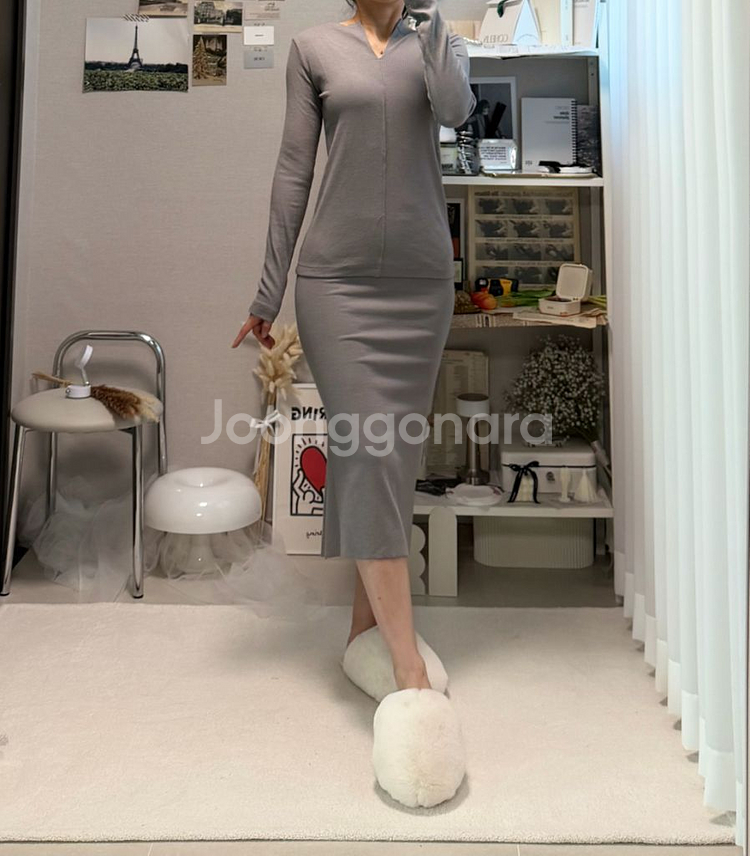 개인정보(거래정보)를 주고받는 행위는 사기에 노출될 수 있으므로 즉시 중고나라로 신고해 주세요쫀쫀한 골지 소재 투피스 셋업입니다. 브이넥 긴팔티와 H라인 스커트 조합으로, 세련된 무드를 연출할 수 있습니다. 스판 소재로 글램한 핏을 자랑합니다. 1회 착용 후 세탁해서 보관중인 거의 새상품