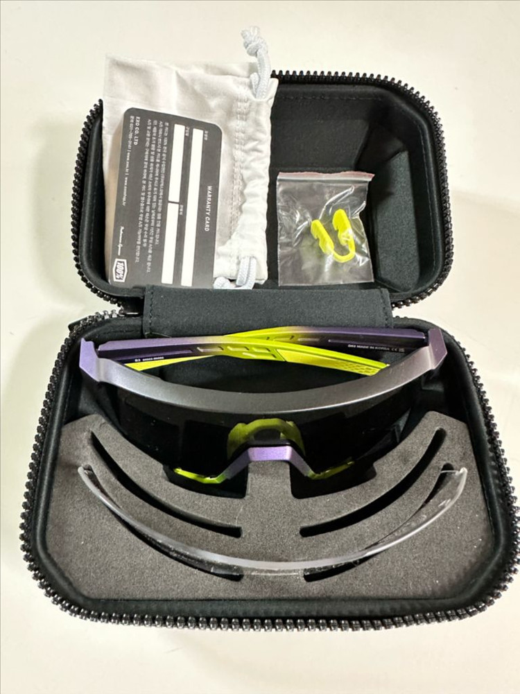 100% S3 스포츠 고글 판매합니다. 시착만 했고 스크래치 없습니다. 매트 메탈릭 프레임에 디지털 브라이츠 색상이 포인트로 들어가 있습니다. 스모크 렌즈에 여분 코받침, 보증서, 더스트백까지 풀세트로 드려요. * 클리어 렌즈만 사용감이 있어, 다른 S3 100% 제품의 클리어 렌즈로 구성을 맞췄습니다. 런닝, 자전거, 야구 등 야외 스포츠 활동에 좋습니다. 문의 없으시면 바로 안전결제해주시면 됩니다!