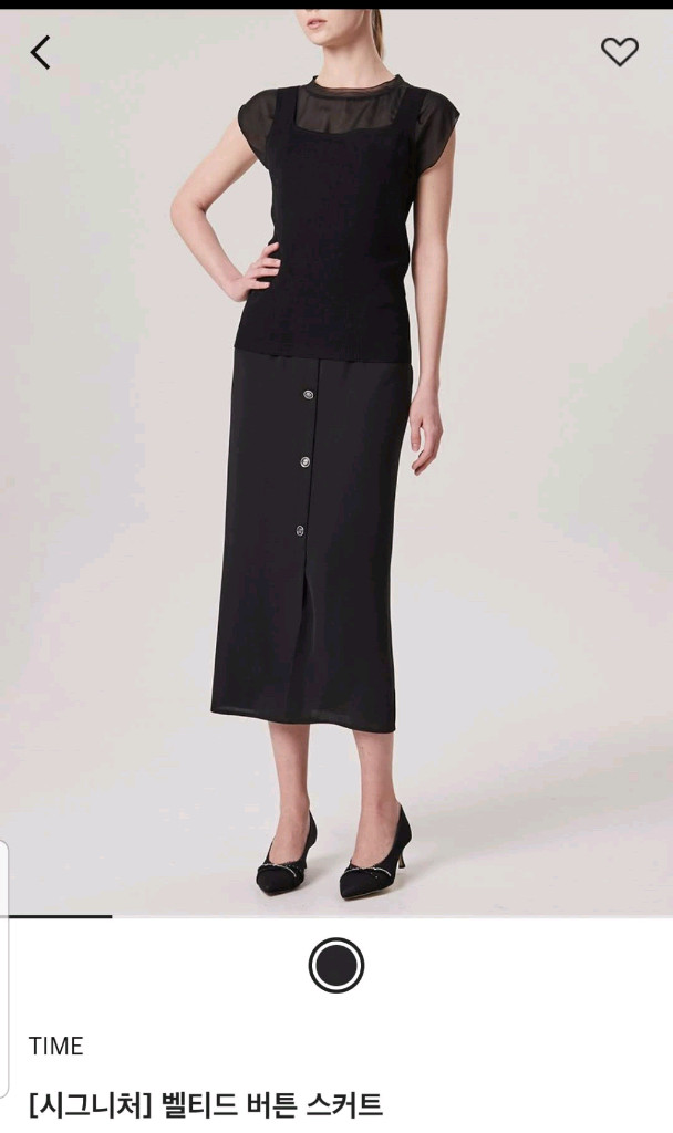 타임 벨티드 버튼 스커트 블랙컬러 61사이즈 (넉넉26인치) 롱 스커트로 벨트와 버튼 디테일로 고급스러워요 모델과 같이 여성스럽게 코디하셔도 되지만 흰반티에 슬리퍼 착용하고 입으시면 편안하고 세련된 룩이 된답니다. 지금부터 한여름까지 입으시면 됩니다. 상태은 새상품처럼 깨끗해요!! 옷걸이 자국도 없고 희끗한 얼룩없이 찐블랙으로 고급짐을 느낄정도로 상태좋아요^^ (모두사진참조) 허리단면은 34.5 총장은 88 앞슬릿있어 H라인이어도 걸을때 넓은 보폭가능합니다^^ 택포 9만원입니다 반품은 사양합니다
