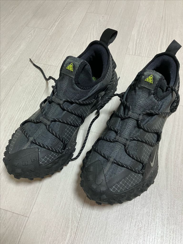 1.제품명: Nike ACG Mountain Fly Low Gore-Tex SE Dark Smoke Grey 2.사이즈 및 색상: 검정 / 280 3.제품상태: 10/9 4.가 격(배송비 선불/착불): 150000(착불) 5.연락처 및 판매자 거주지역: 충북청주 6. 사진 및 기타사항: 1회착.박스없어서 저렴하게 판매합니다.새상품급.