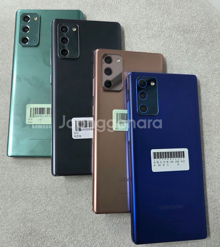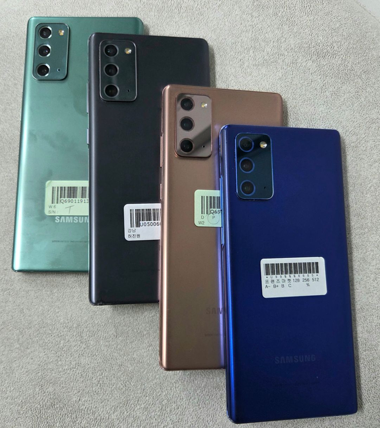 갤럭시 S20노트 공기계 판매 합니다. 철저히 검수해서 기능상 정상작동 하는 제품만 판매 하고 있습니다. (다른색상 제품도 많이 있습니다. 대량 주문도 환영 합니다.) 편하게 문의 주세요~ 🔻등급 별 제품 가격🔻 특S급 : 액정 외관 새제품급 - 250,000 S급 : 액정 멍 잔상 기스 없고 외관 깔끔한 제품 - 210,000 A급 : 액정 멍 잔상 기스 없고 외관상태 좋은데 찍힘이나 기스있는 제품 - 180,000 B급 : 액정 약 잔상 있고 외관상태좋은데 찍힘이나 기스있는 제품 - 150,000 🔻 거래방법 🔻 📦택배거래 가능 📦퀵 서비스 가능 📦직거래 가능 ☎연락처: 010-9484-1713 (문자로 연락 주시면 더 빠른 답변 가능합니다.) 직거래 주소 서울 성동구 무학로6길 50 삼성 쉐르빌 왕십리 역 1번 출구에서 도보 2분 거리 직거래 구매 시 방문 시간은 평일 : 오전 11:00시 부터 ~ 오후 7시 30분 까지