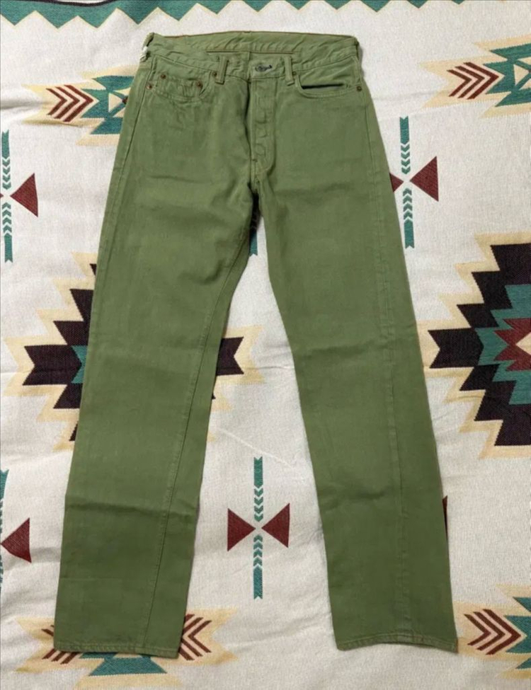 1회 입고 세착하였습니다. *사이즈 W30(기장수선X, 실측 참고 부탁드립니다.) 총장105 허리단면37 밑위27 허벅지단면29 밑단20 *상품설명 웨어하우스의 서브라인 중 하나인 더블웍스에서 발매한 그린 데님입니다. 매력적인 그린컬러 데님 원단이 사용된 것이 특징이며, 논셀비지이나 방축가공이 되어있지 않은 사양의 제품입니다. 80년대 논셀비지 리바이스를 복각한 것으로 추측됩니다. 리벳이나 버튼플라이 모두 충실하게 고급의 오리지널 사양 부자재가 적용되었습니다.