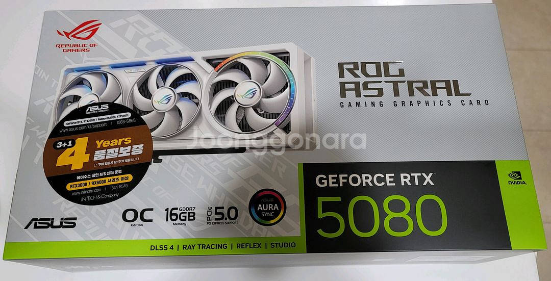 ASUS ROG Astral 지포스 RTX 5080 WHITE OC D7 16GB 미개봉 새제품 입니다 3월달 구입 제품이며 직거래 합니다