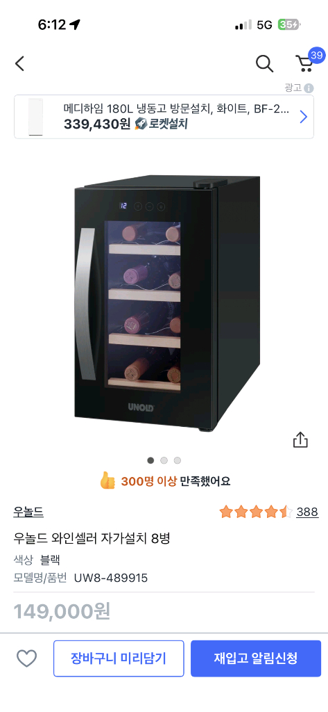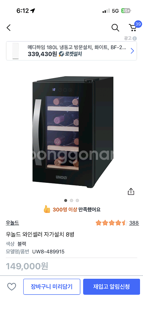원본링크 쿠팡을 추천합니다! 우놀드 와인셀러 자가설치 8병 https://link.coupang.com/a/enZrcb 1. 구입시기 : 기억x 2. 구입경로 : 쿠팡 3. 상품 상세 내용 (스펙) - 구성품 : 본체 - 정상작동 및 공장 초기화 완료 - 알코올 100% 소독 및 포장 완료 5. 상태 : A급 6. 구입원가 : 15만원 7. 거래형태 : 택배 or 직거래 8. 할인 : 노원구 영신여고 쪽으로 직거래 하러 직접 오시면 5천원 정도 빼드립니다. 받아 보시면 123% 이상 만족하실 제품 입니다. 반품 및 환불 절대 불가하니 신중한 결정 부탁드립니다. 에눌, 교신 문의 일절 안 받습니다. (아예 무시합니다!) 전자기기라 직거래 권고 드리며, 배송중 전자기기 파손시 책임은 저희가 지지 않습니다! 오7구오8육9칠로 문자 부탁드립니다!