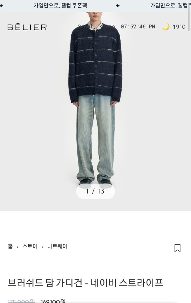 벨리에 브러쉬드 탐 가디건 네이비105 판매해요 새상품