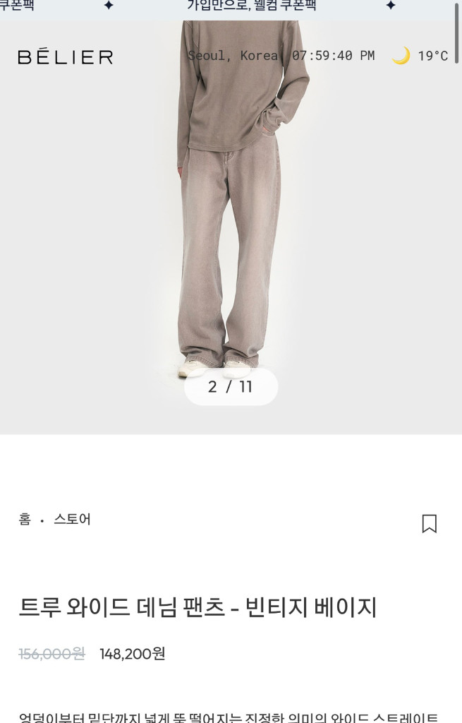 벨리에 트루와이드 빈티지베이지 32 롱기장 판매해요