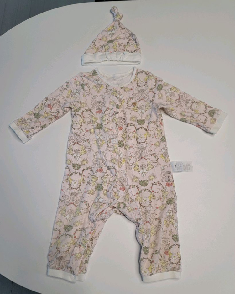 백화점에서 6만원정도 주고 구입한거에요 무늬나 색감이 예뻐서 입혀놓으면 고급스러워보여요^^ 아뜰리에슈에 꽂혀서 비슷한 무늬 옷 보자마자 구입했어요 더 큰 사이즈가 안나온다는게 아쉽네요 ㅠㅠ 모자는 세탁만했어요. 이염 없어요!