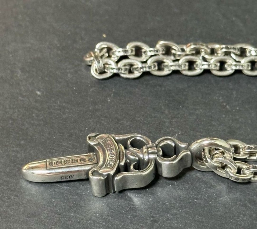 개인정보(거래정보)를 주고받는 행위는 사기에 노출될 수 있으므로 즉시 중고나라로 신고해 주세요해외구매 크롬하츠 페이퍼체인 목걸이+더블대거 팬던트 세트 크롬하츠 페이퍼체인 60cm 24인치 더블대거 팬던트 미디움 사이즈 고리포함 5cm 집에서만 몇번 착용해보고 보관만함 전부실사진 유화가공처리 내부14k및풀각인 은x 정문의x