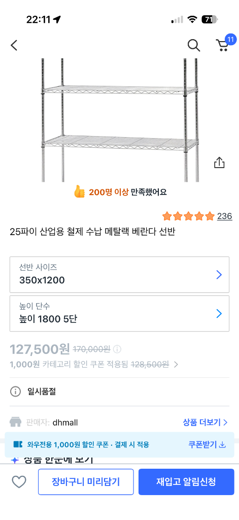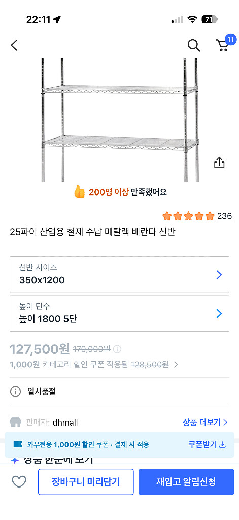 25파이 산업용 철제 수납 메탈랙 베란다 선반 https://link.coupang.com/a/eoapKw 철제 선반 350 x 1200 x 1800 5단 25년 4월 구매 일반 얇은 철제선반보다 하중을 잘 버팁니다.