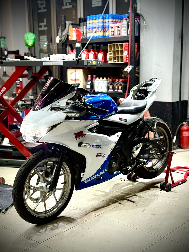 스즈키 gsx-r125 2021년식 이고요. 키로수 2.5만 키로수 상승X 1. 퀵시프트 시공 클러치 안잡고 스로틀 감은 상태로 기어 올려서 빠른 가속 가능합니다. 알리오에 퀵시프트 기종 몇 없어요. 2. 아크라포빅 풀배기(구변X) 퀵시프트+풀배기 조합 고알피엠 퀴싶쓰면 백파이어 기가막히게 터집니다. 머플러커버도 수전사 못생겨서 카본커버 이쁜걸로 끼워놨어요. 소음기 끼워둔 상태인데 탈부착 가능합니다. 저는 시끄러운 걸 좋아하진 않아서..ㅎㅎ 3. 10r미러 순정은 못생기고 작아서 알차미러 달아놨습니다 전구 들어오게 하는건 안이쁘고 위법이라 안했고, 3d프린터 어댑터 만들어서 사각지대 없이 잘 보이게끔 만들 예정입니다. 4. 실버휠도색 이거 워낙 이쁘다고들 해서 한 번 해봤습니다 도색비만 30여만원 정도 하네요. 6 블루컬러 캐노피 디자인상 시트보단 캐노피가 이뻐 어차피 항상 혼자타기에 캐노피 끼워놨는데, 탠덤시트 필요하면 같이 드립니다. 7. 블루투스 obd2 경고등소거,엔진열,전압 등등 폰으로 체크 가능합니다. 구매하시면 사용법 알려드립니다. 8. 휀다리스킷 이거 해야 이쁩니다.. 9. 나머지..스탠드클립(블루),도미노그립(블루),무선휴대폰충전거치대, 변색 스크린 등등.. 카올 새로 올려서 모든판 다 깨끗하고요. 고등학생들이 무판으로 막 타던 바이크 아니고, 대학생인데 메인바이크는 따로 있고 디자인이 이뻐서 남는 시간에 꾸밀차로 데려온 바이크 입니다. 현재 강남넘버로 번호판등록되어있고요. 명의이전,폐지 다 가능합니다. 4/2날 환경검사 통과해서 2년 동안 검사없습니다. 최근정비내역 이리듐 점화플러그(상급플러그) 교체 에어필터 교체 배터리 교체 브레이크 블리딩 작업 리어 타이어 교체 당연히 관리 또한 친한 지인께서 바이크샵을 해서 1000k마다 오일 갈고 정비했고요. 구매하시면 엔진오일 새걸로 갈고 드립니다 하여간, 키로수로 짧고 그냥 타시기만 하면 됩니다. 이것저것 설명하다보니 말이 길어졌네요.. 마음같아선 ecu맵도 잡고 보업도 할까했는데 요즘 만사가 귀찮아서 그냥 정리해봅니다.