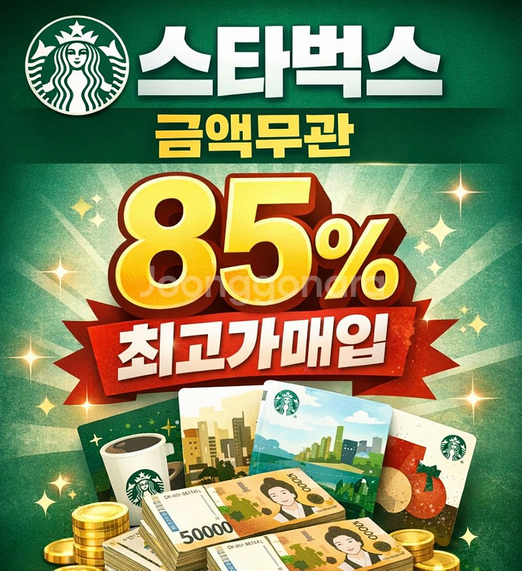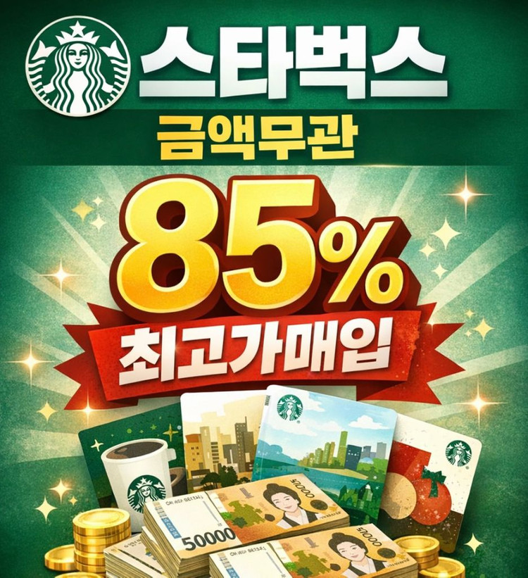 개인정보(거래정보)를 주고받는 행위는 사기에 노출될 수 있으므로 즉시 중고나라로 신고해 주세요금액 무관 85퍼 무한 매입합니다 핀 바코드 남겨주시면 금액확인후 처리드립니다 커피등 음식은 매입하지않습니다 2,3,5,10,20만원권 매입하고 고액권은 따로문의주세요 010-4095-4444