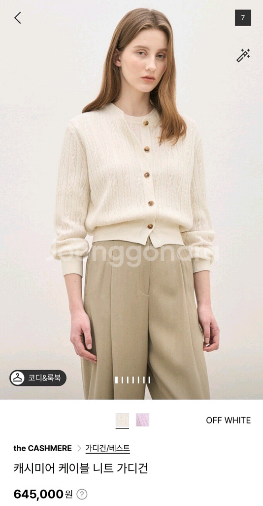 더캐시미어 케이블 니트 가디건 캐시미어 100% 사이즈 : 85 24년 ss제품 1회 착용 아주 예쁜 색감에 촉감이 부드럽고 고급스런 캐시미어 가디건입니다 ( 솔직히 판매 고민되는 옷입니다) 우체국 택배 이용