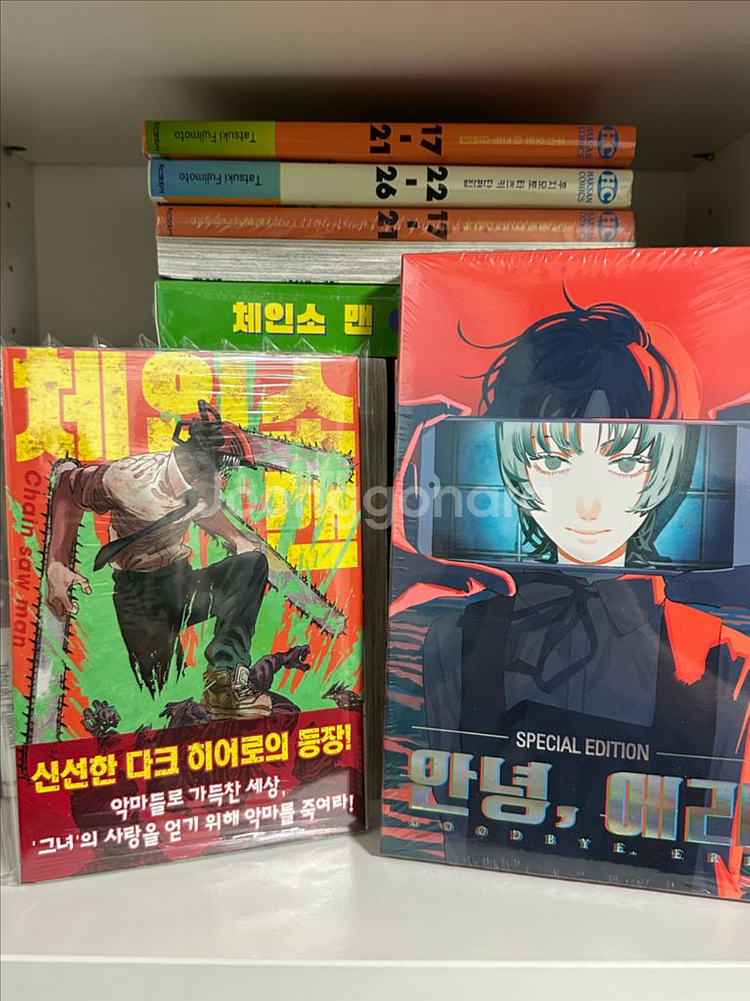 체인소맨 1권부터 21권까지 모두 미개봉 초판입니다. 상태는 미개봉이다 보니 상태 최상입니다. 안녕에리 스페셜에디션도 미개봉으로 상태 최상입니다. 단편집은 낱개만 초판개봉이고 합본판은 미개봉입니다. 모두 일괄로만 판매합니다. 구매 후 환불은 불가이니 신중히 고민 후 구매부탁드립니다. 책이 많다보니 택배는 우체국 택배나 일반택배 이용합니다.