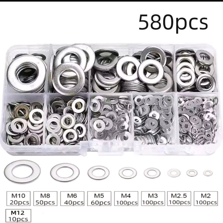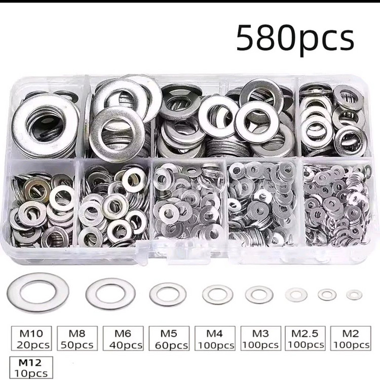 새상품 다양한 사이즈의 와셔 580개가 들어있는 세트입니다. M2부터 M12까지 다양한 크기로 구성되어 있어 폭넓게 활용 가능합니다. 플라스틱 케이스에 담겨 있어 보관이 용이합니다. 구매 원하시면 바로 안전결제 해주시면 됩니다! 360개는ㅡ7000입니다 직거래 상계역근처입니다 반값택배2천 편의점택배4천 우체국택배4천 착불가능 다른판매품과 같이 주문해서 택배비 절약하세요.묶음배송가능