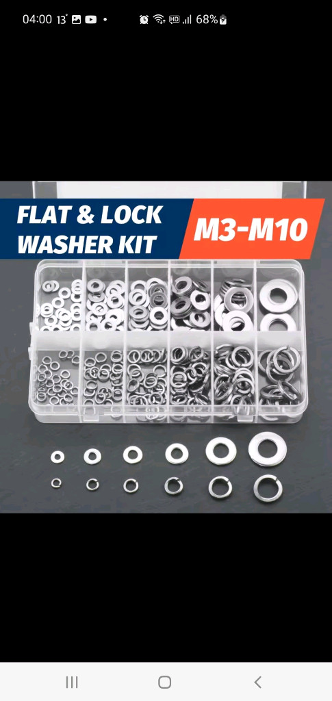새상품 다양한 사이즈의 와셔 260개가 들어있는 세트입니다. M2부터 M12까지 다양한 크기로 구성되어 있어 폭넓게 활용 가능합니다. 플라스틱 케이스에 담겨 있어 보관이 용이합니다. 구매 원하시면 바로 주문. 직거래 상계역근처입니다 반값택배2천 편의점택배4천 우체국택배4천 착불가능 다른판매품과 같이 주문해서 택배비 절약하세요.묶음배송가능