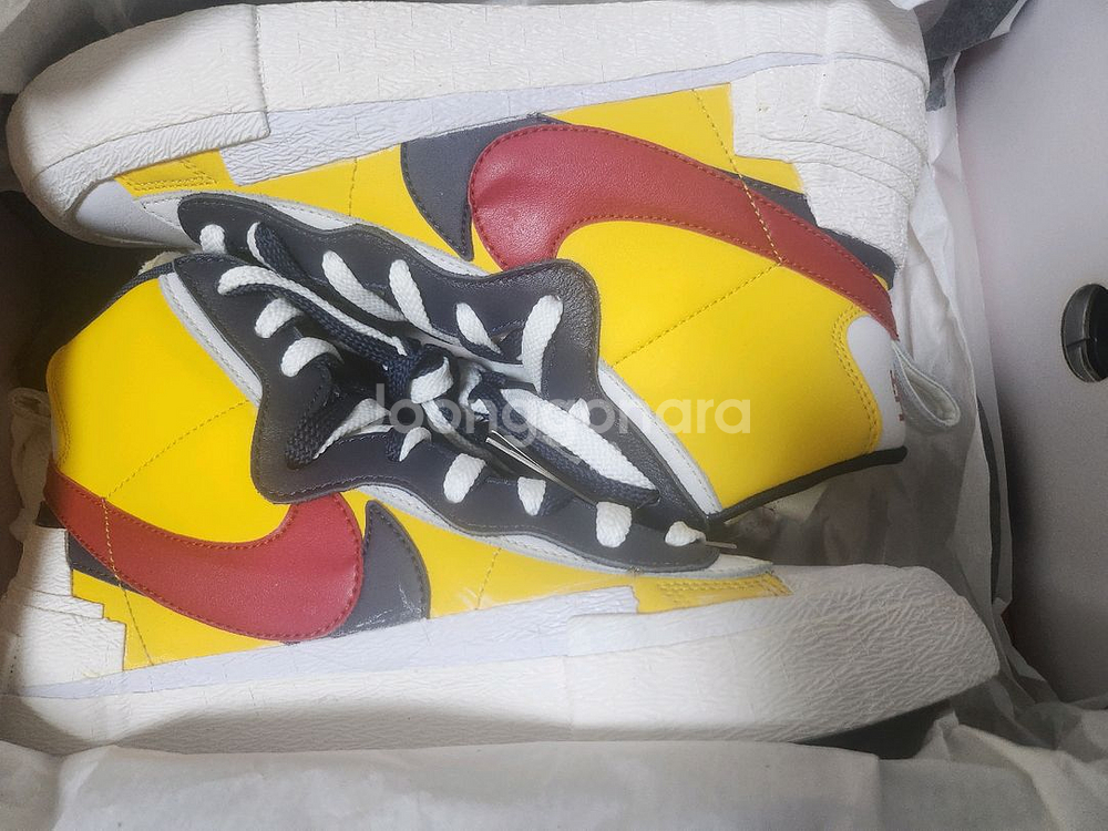개인정보(거래정보)를 주고받는 행위는 사기에 노출될 수 있으므로 즉시 중고나라로 신고해 주세요나이키 블레이저 미드 사카이 제품입니다 노란색과 빨간색의 조화가 돋보이는 디자인입니다 사이즈는 275mm입니다 미시착 나코텝새상품 급처입니다.