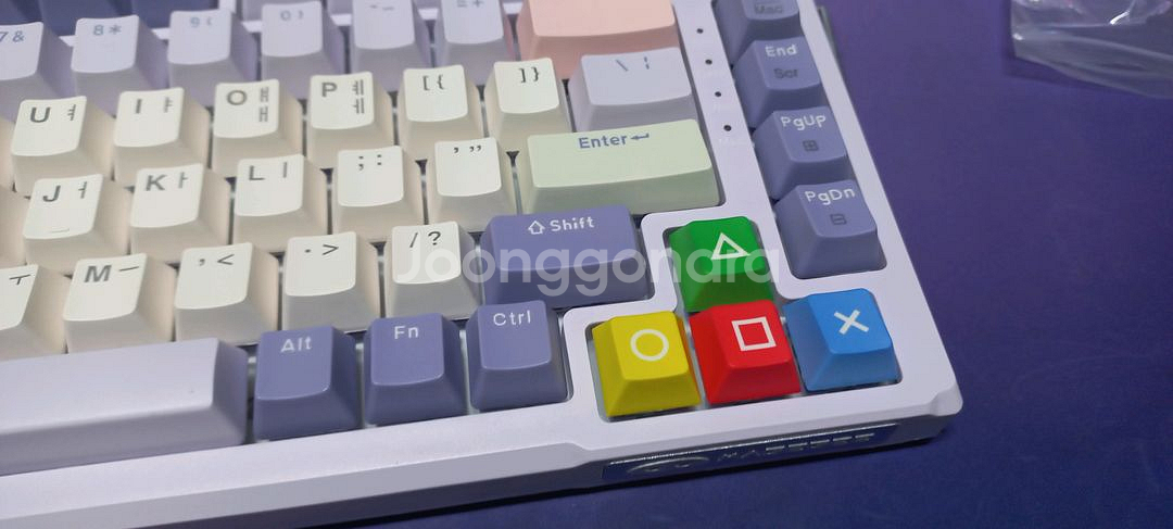 4개 색으로 되어있는 키캡입니다 기존키캡에 비해 약간 낮은편입니다 써봤는데 오히려 편합니다 색깔도 컬러풀해서 더 이쁩니다