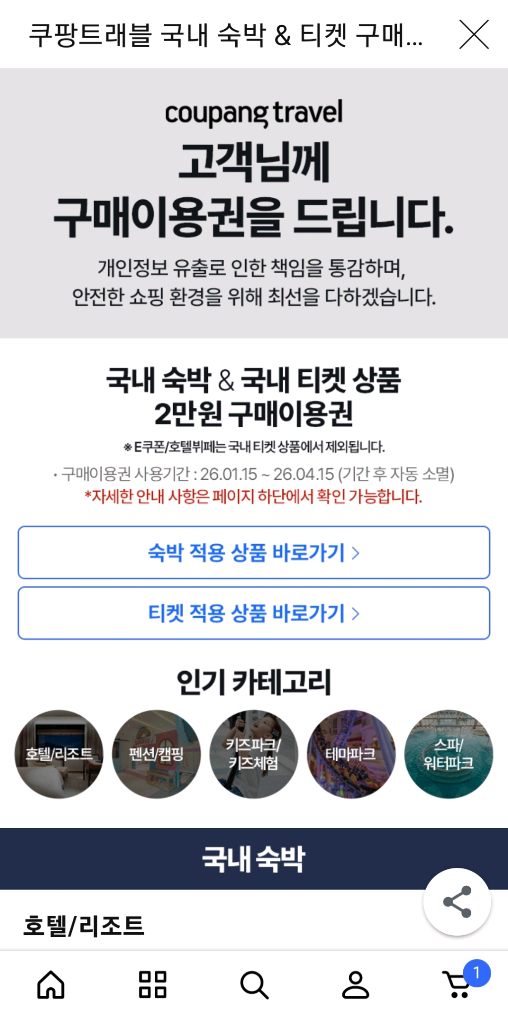 쿠팡트래블 2만원 이용권