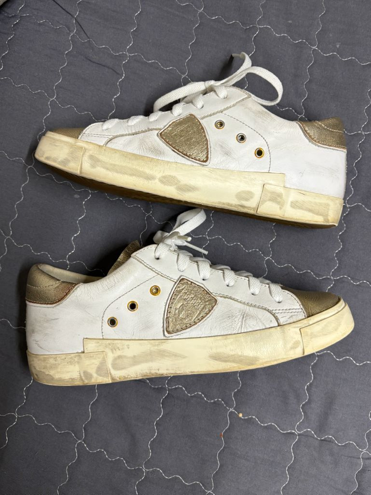 개인정보(거래정보)를 주고받는 행위는 사기에 노출될 수 있으므로 즉시 중고나라로 신고해 주세요필립모델 화이트 골드 스니커즈 37사이즈 (240) 22년 한스타일 39만원 구매 구성품 없음 사용감 있는 제품이라 저렴하게 판매합니다. 사진에 보이는 착용감 있지만 특별한 하자는 없어요