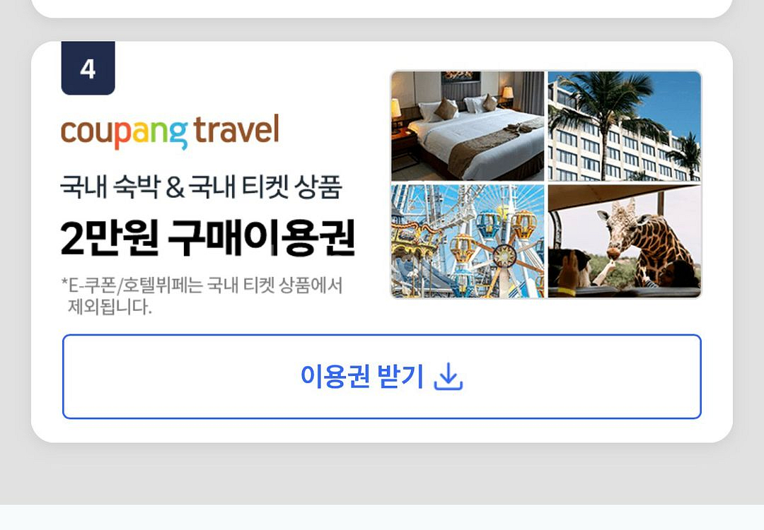 국내 숙박과 티켓을 함께 구매할 수 있는 2만원 할인 가격 이용권이에요. 호텔 예약이나 여행 계획 세우기에 정말 유용한 상품입니다!