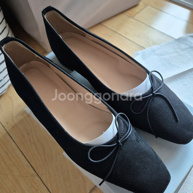 택미포입니다 새상품입니다 굽높이 3센치 정도입니다 블랙 스웨이드 재질의 플랫슈즈로 경조사때 신기 좋은 디자인입니다 다만 스웨이드 원단 특성상 흐물거림이 보이는 점 사진에서 확인 부탁드려요 저는 다른 색상도 있어서 신고 다니는데 원단이 특성이기 때문에 눈에 띄게 신경쓰이지는 않았던것 같아요 배송은 박스채로는 어렵고 지퍼백에 넣어 포장하여 배송 드립니다