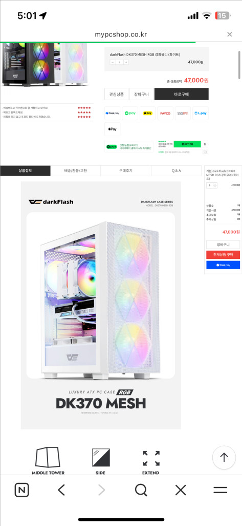 CPU | AMD Ryzen 5 5600x (새제품) 메인보드 | asus A520M (새제품) RAM | DDR4 16GB (듀얼채널구성)(개인중고) 그래픽카드 | pny RTX 5060 8GB (새제품) SSD | 삼성 500gb (업체중고) CPU 쿨러 | SOCOOOL RC 370N 화이트 (새제품) 파워 | maxwell gaming 정격 600W (네이버 업체 중고) 케이스 | 다크플래쉬 Dk370 화이트 (새제품) OS: 윈도우 11pro @상태 안내@ 새제품+중고 조립 후 사용x 윈도우랑 드라이버만 설치 3DMark 테스트 정상 통과 전원선 포함 요즘 게임들 상옵션으로 렉 없이 매우 잘 되는 사양입니다. 2026년 4월 새제품 160만원대 견적