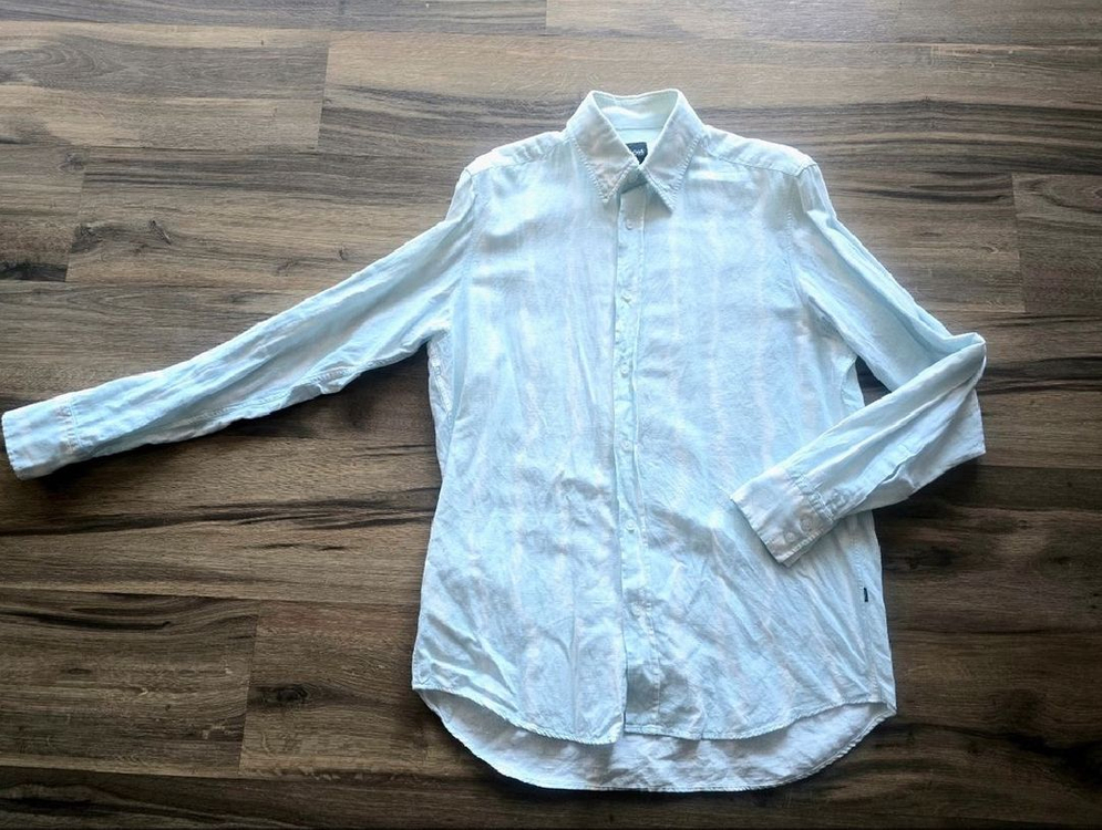 HUGO BOSS 린넨 셔츠 M 사이즈 판매합니다 정품 HUGO BOSS( 휴고보스 ) 린넨 셔츠입니다. 흔하지 않은 라이트 민트·라이트 블루 톤의 워시드 린넨 컬러 입니다. 정품 입니다. 가품일시 두배 보상 합니다. 우체국 택배로 발송 합니다. 택배비는 제가 부담합니다. ✔ 제품 정보 브랜드: HUGO BOSS 사이즈: M (100 추천) 소재: 린넨 100% 원산지: 폴란드 정식 수입원 라벨 포함 ✔ 상태 사용감 감안해서 가격 책정했어요. 그래도 예민하신분은 Pass~ 린넨 특유의 표면감(올 튐/슬럽)은 원단 특성으로 자연스러운 스타일 ✔ 원단·염색 특징 이 제품은 린넨 100% 특유의 ‘슬럽(Slub) 텍스처’와 ‘가먼트 다잉 워싱(Garment-Dyed Washed Linen)’ 공정으로 제작된 셔츠입니다. 그래서 색감이 균일하게 폭 덮는 게 아니라, 은은하게 밝고 어두운 톤이 자연스럽게 섞인 빈티지·내추럴한 고급 린넨 느낌이 잘 살아 있어요. > 슬럽 텍스처 + 가먼트다잉 워싱 = 자연스러운 색 번짐, 멋스러운 린넨 조직감 고급 린넨 셔츠에서 많이 쓰는 방식입니다. ✔ 세탁 정보 드라이클리닝 권장 물세탁 금지 다림질은 약하게 린넨은 드라이 맡기면 원단 결이 깨끗하게 살아납니다 마지막 사진은 코디에 참조하시라고 올립니다.