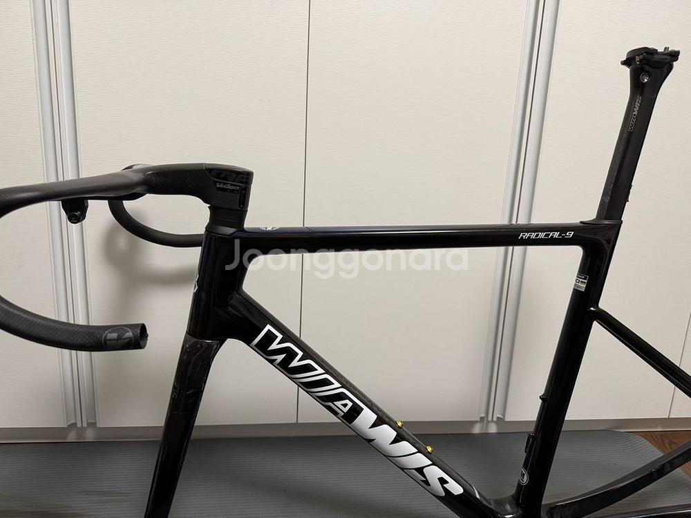 위아위스 래디컬9 비전 매트론 일체형핸들바 프레임셋 판매 구성 프레임 (사이즈 m) 포크 싯포스트 일체형 카본 핸들바 가격 200 구동계 이식하면서 판매하게됐습니다 삼각쪽 세우다 생긴 기스 긁힘이 있고 전반적으로 양호합니다 상황에 따라 bb도 같이 포함이 될 수도 있습니다 고등선수부용 차대라 밟을때 단단합니다 프레임 교체시 프레임 단독 사진 올리겠습니다.