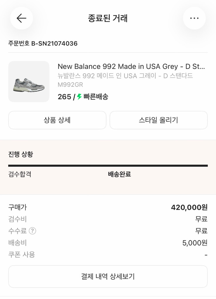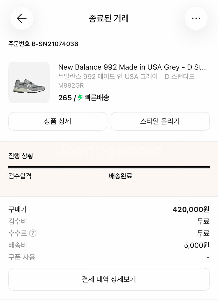 뉴발란스 992 그레이 운동화 265