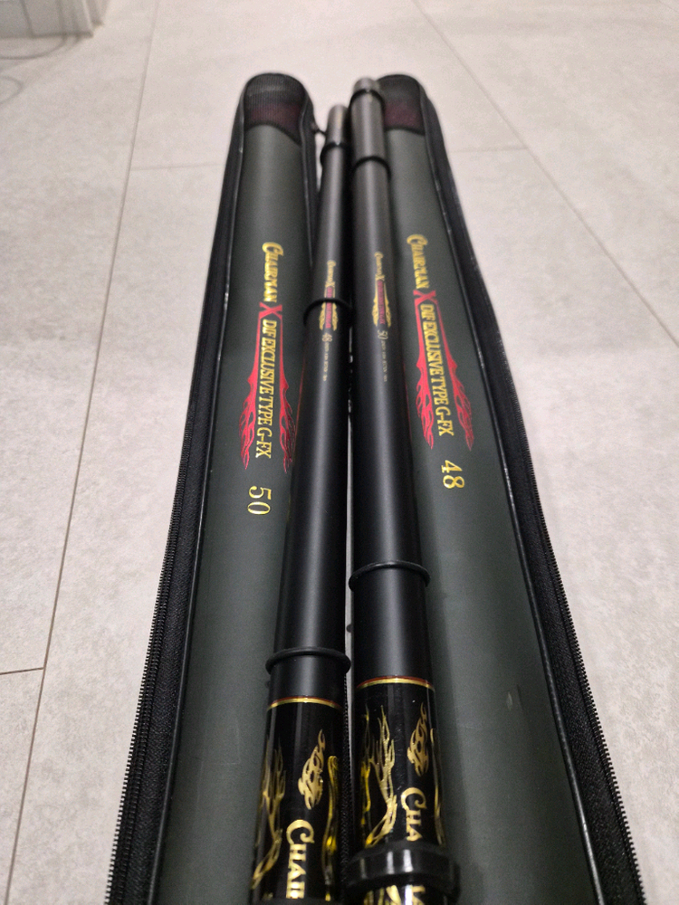 Dif 체어맨X 장대 48 50 3회미만사용으로 상태 최상급입니다. 낚시대에 실리콘로드줄감기 장착되어있고 낚시집내부줄걸이는 탈거 하였습니다 개별판매도 가능합니다. 48-15만 50-16만 Dif 체어맨x 받침대 4절 2개 사용감 및 기스 있습니다. 2대합 4만 택배가능합니다 문자주시면 답이 빠릅니다 오일칠공칠육육오