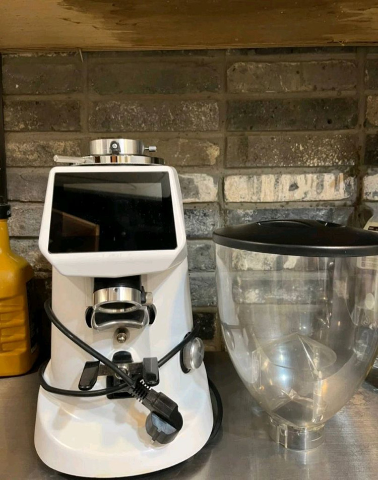 매력적인 화이트 색상의 피오렌자또 F64E 커피 그라인더예요 디지털 디스플레이로 분쇄도 조절이 편리하고, 도징량 설정도 가능해요 원두 그라인딩 시 최적의 성능을 발휘하며, 깔끔한 디자인으로 주방 어디에 두어도 잘 어울려요 커피 애호가라면 누구나 만족할 만한 성능과 디자인을 갖춘 그라인더랍니다 ++ 사진에 보이듯 추출수 4800가량 됩니다 깨끗하게 닦아두었습니다 직거래 강릉입니다 택배되시구여 안결 안받아영