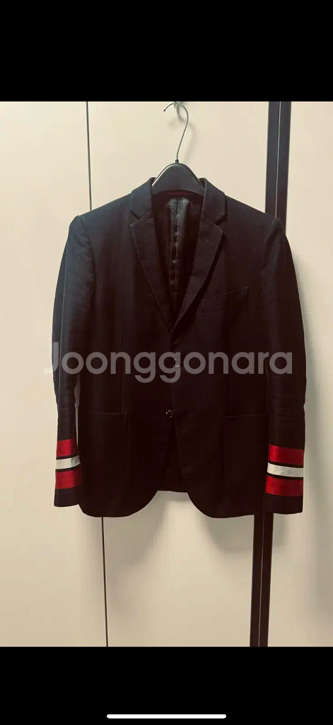 개인정보(거래정보)를 주고받는 행위는 사기에 노출될 수 있으므로 즉시 중고나라로 신고해 주세요구찌 정품 남성 정장 재킷이에요. 소매 부분에 레드 포인트 디테일이 있고 전체적으로 상태 양호합니다. 고급스러운 네이비 컬러로 비즈니스나 특별한 자리에 착용하기 좋아요.
