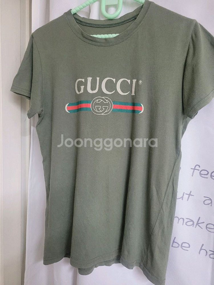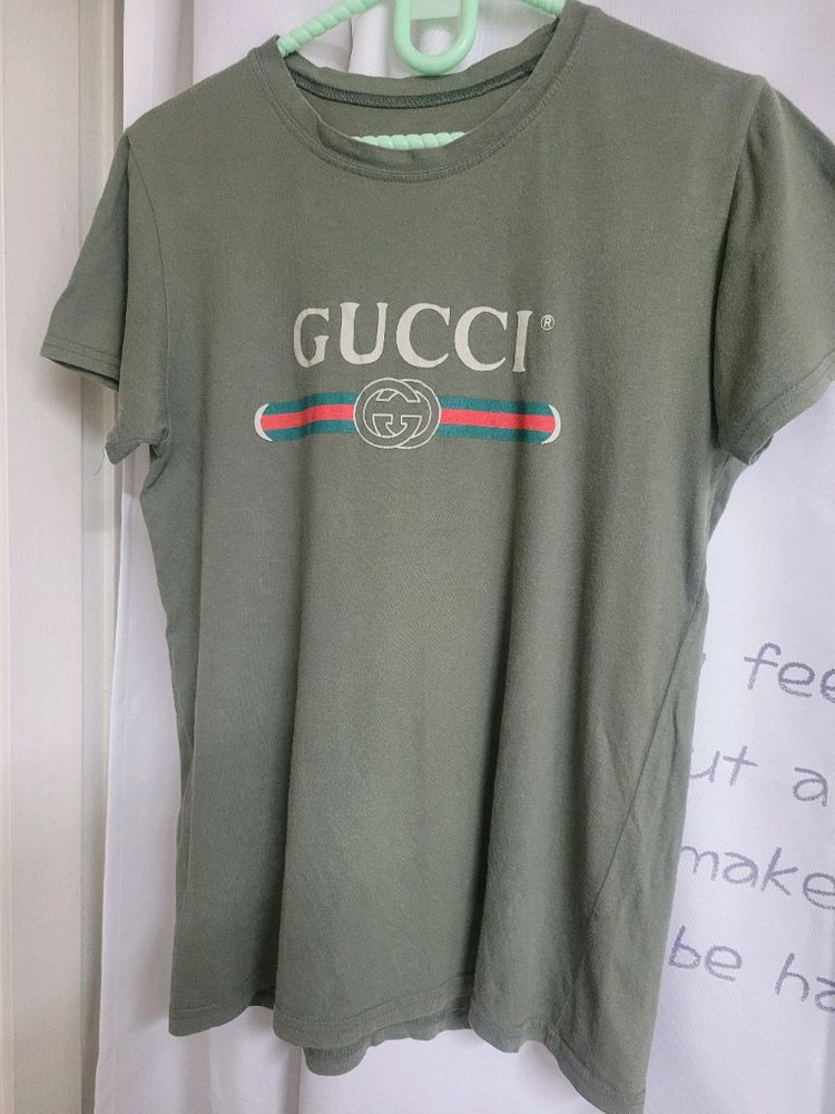 개인정보(거래정보)를 주고받는 행위는 사기에 노출될 수 있으므로 즉시 중고나라로 신고해 주세요구찌 로고가 돋보이는 카키색 반팔티예요 사진에서 보이는 그대로의 제품입니다 어떤 하의와도 잘 어울리는 기본 아이템이에요 데일리룩으로 활용하기 좋은 티셔츠랍니다