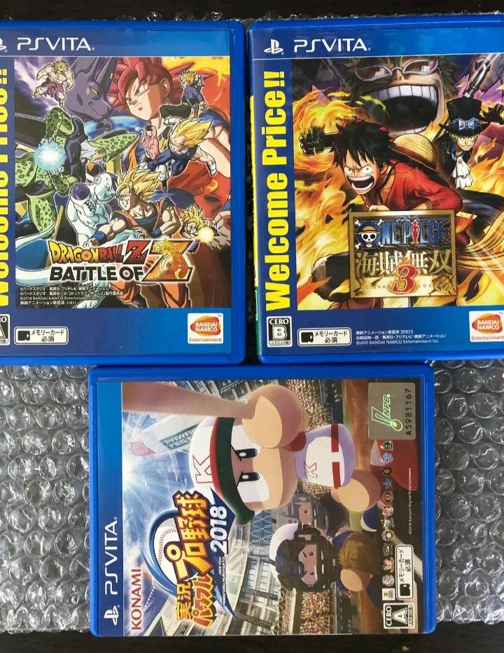 개인정보(거래정보)를 주고받는 행위는 사기에 노출될 수 있으므로 즉시 중고나라로 신고해 주세요psvita 모두 일본판 드래곤볼Z 배틀 오브 Z 원피스 해적무쌍3 실황파워풀 프로야구 2018 3개 일괄로 판매합니다