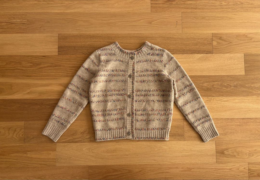 한섬 브랜드 마인(MINE)의 고급 니트 가디건입니다. 22년에 구매했습니다 소재: 모 85%, 캐시미어 15% (배색 모헤어 혼방) 착용횟수가 워낙 적고 고가제품이라 보관도 신경써서 보풀하나없고 상태 최상입니다 총장 50 가슴단면 49