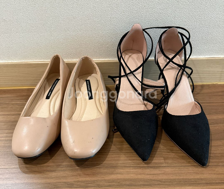개인정보(거래정보)를 주고받는 행위는 사기에 노출될 수 있으므로 즉시 중고나라로 신고해 주세요슈펜 플랫슈즈, 힐 2종 230mm 일괄 판매합니다. 플랫슈즈는 베이직한 디자인에 은은한 베이지 색상입니다. 힐은 블랙 스웨이드 재질에 끈으로 발목을 감싸는 디자인입니다. 반택, 착불 택배 가능해요.