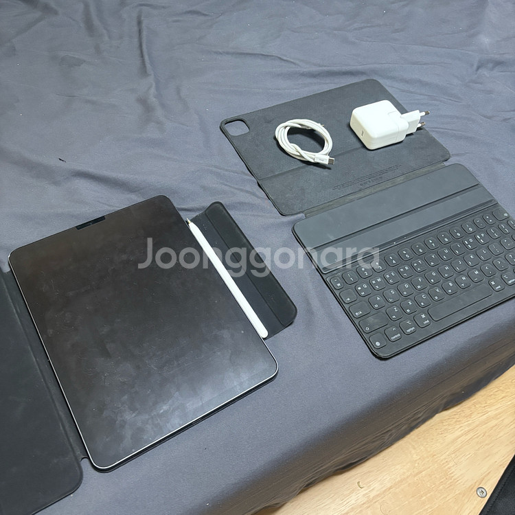 정품 어댑터에 개인적으로 사용한 충전기 드립니다! 박스는없고 사진 구성 그대로입니다! 베터리 잔량 볼줄을 모르지만 필기사용 업무로 하루 근무 가능했습니다 애플펜슬에 각인이있어 사포로 지웠습니다 눈으로 자세히 보면 보이지만 카메라엔 담기지않았습니다 ㅠ 제가 찾을수있는 모서리 찍힘 사진 첨부했고 애플펜슬 팬촉이 금속 펜촉이라 종이 필름에 자잘한 필기 기스가 있습니다 스마트키보드는 구매후 사용을 거의하지않았습니다 파손면책 생각하시고 연락주세요! 포장은 꼼꼼하게 하겠습니다