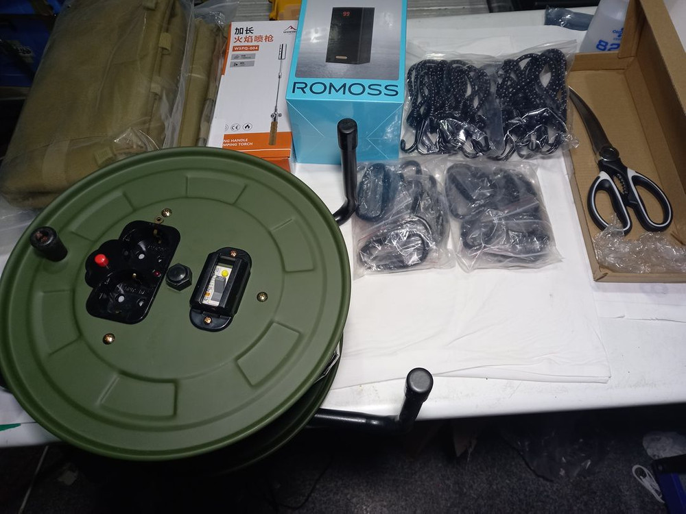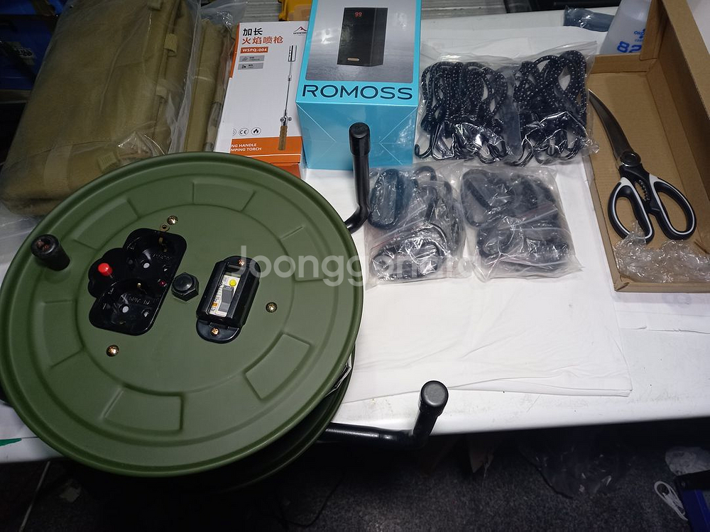 캠핑할려다가 못해서 한번도 안쓴 캠핑용품 팝니다. [캠핑가방] (새거) 10000원 카키색입니다. 가로 34 / 세로 17 / 높이 19 꽤 많이 수납할수있는 가방입니다. [2구 20연장 전기릴선] (새거) 60000원 국산이고, KC 인증 받았고요, 규격은 4000W 16A 250V 제품입니다. 안전 차단기 당연히 내장되어있구요, 파워제트 토치 (새거) 40000원 일종의 롱노즐 토치입니다. 노즐 사이즈를 줄였다 늘였다 할수있어서, 고기구울때 아주편하구요 부탄가스와 이소가스 겸용입니다. 로모스 벽돌 배터리 (새거) 110000원 ROMOSS PD 18W 보조배터리 PEA60 60000mAh 배터리입니다. 상당한 충전용량을 가진 배터리구요, 캠핑시에 거의 필수입니다. 후크 (새거) 10팩 1셋 10000원 후크 길이 총 16센치입니다 참고하시구요, 넉넉한편입니다. 비너 (새거) 12팩 1셋 10000원 비너 길이는 7.8센치입니다. 대형 비너인편이구요, 어지간한거 다들어갑니다. 바베큐용 가위 (새거) 20,000원 고기자르기에 적합한 가위입니다. 개별로 팝니다. 대천해수욕장 직거래합니다.