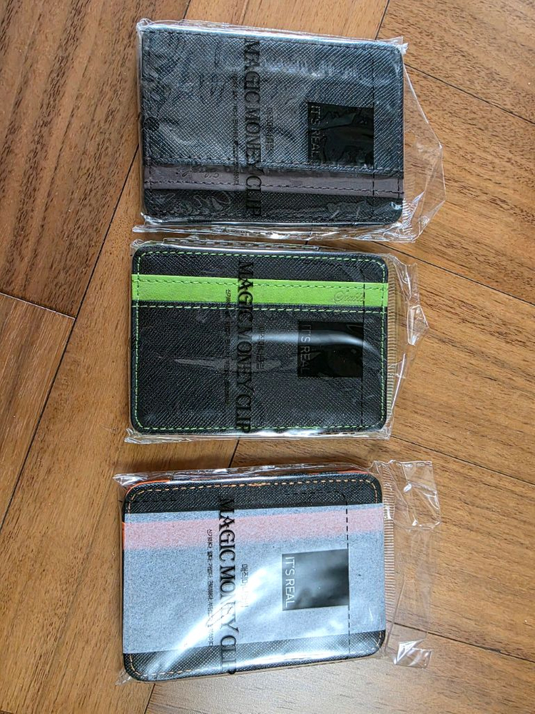 미개봉 매직 머니클립 카드지갑 새상품입니다. 별도 문의 없으시면 바로 안전결제 부탁드려요! * 수량 총 4개(녹색이 2개) 있습니다. 구매하실때 색상 알려주세요. (4개 일괄 구매시 2천원) * 미개봉 새제품입니다. * 페이로 바로 결제하시면 됩니다. * 제가 판매중인 다른 제품들과 묶음 배송 가능합니다.
