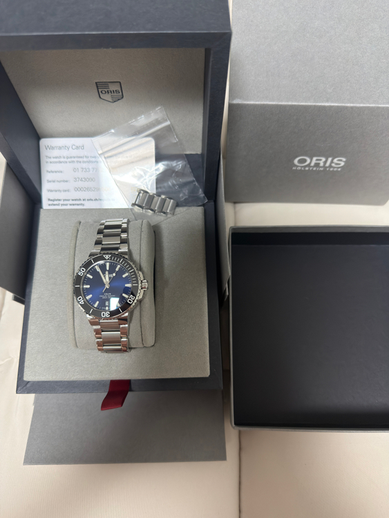 - 상품명 : 오리스 아퀴스 39.5mm 청판 - 구매시기 : 2026. 03. 17 - 착용기간 : 3회 이하 - 오염 및 하자 여부 : 없음 오리스 아퀴스 39.5mm 청판 모델이에요 사진에 보이는 것처럼 구성품 모두 갖춰져 있어요 실기스 조차 없는 새제품입니다.