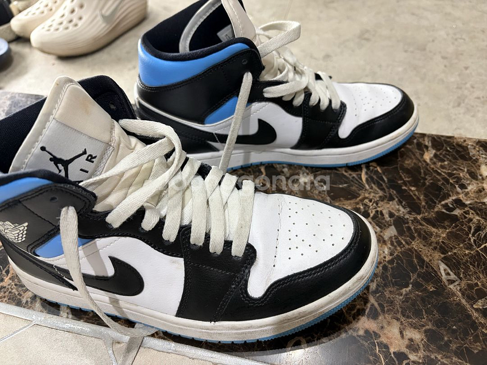 나이키 조던 1 미드 유니버시티 블루 사이즈는 우먼즈 W245 크림에서 정품 구매하였습니다. 박스포함입니다. 여분 끈은 없습니다. 외출은 두번 했는데 세탁은 안해서 생활감 약간 있습니다. GS, CU반값택배도 가능합니다.