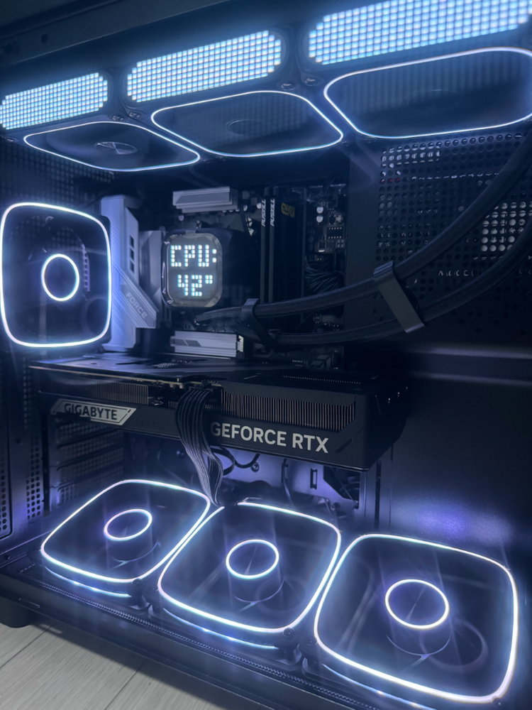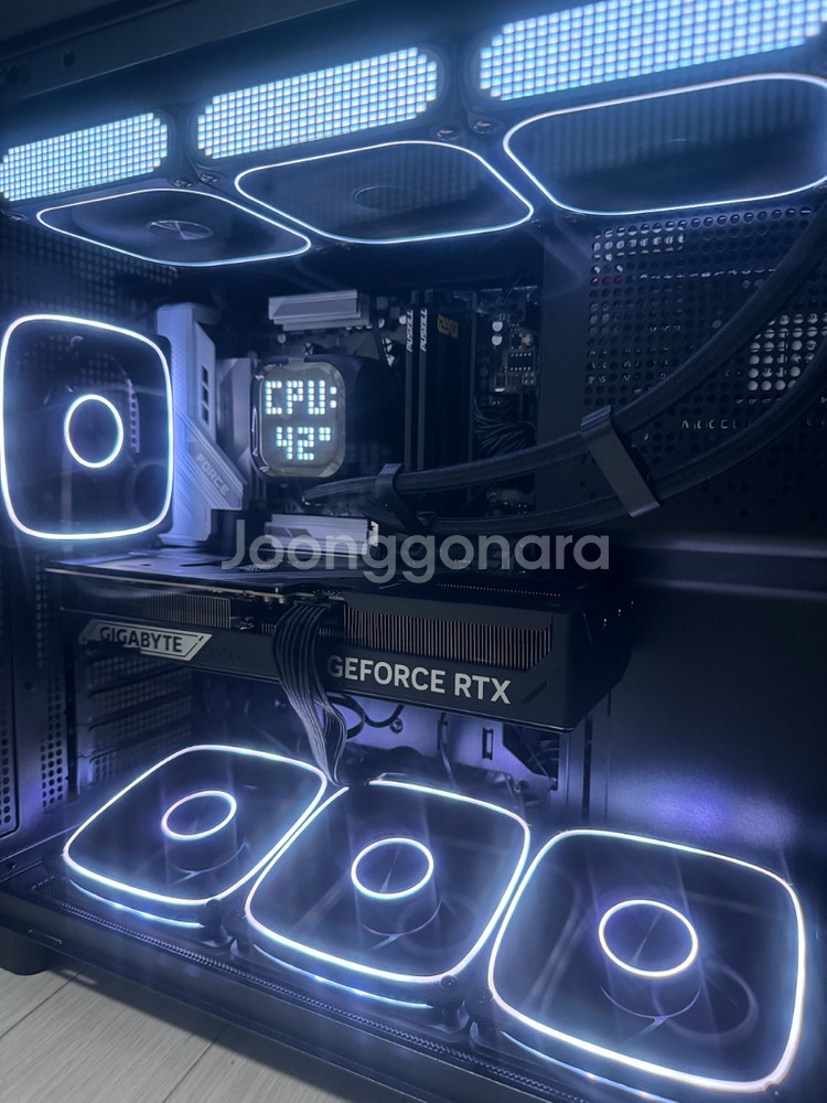 빠른판매원합니다. <4월 13일 조립> - CPU: 라이젠 9800X3D - 메인보드: 기가바이트 B850M FORCE - RAM: DDR5 32GB (16GB x2 / PUSKILL 6000MHz) 삼성칩셋 - 그래픽카드: RTX5080 기가바이트 - SSD: WD 5100 (Gen4) 속도 7000 - 쿨러: 다크플래시 BIT-360 블랙 - 케이스: 마이크로닉스 WIZMAX STELLA - 파워 : 앱코 SETTLER 하이브리드 1000W실버 견적가 약 450만원 🎮 성능 - 붉은사막 / 아이온2 / 배그 👉 4K 환경 풀옵션 쾌적 플레이 가능 윈도우11 정품인증 안전결제 가능 경기도 및 수도권 서울권 배달가능 . 이천으로 오실시 5만원 추가 할인