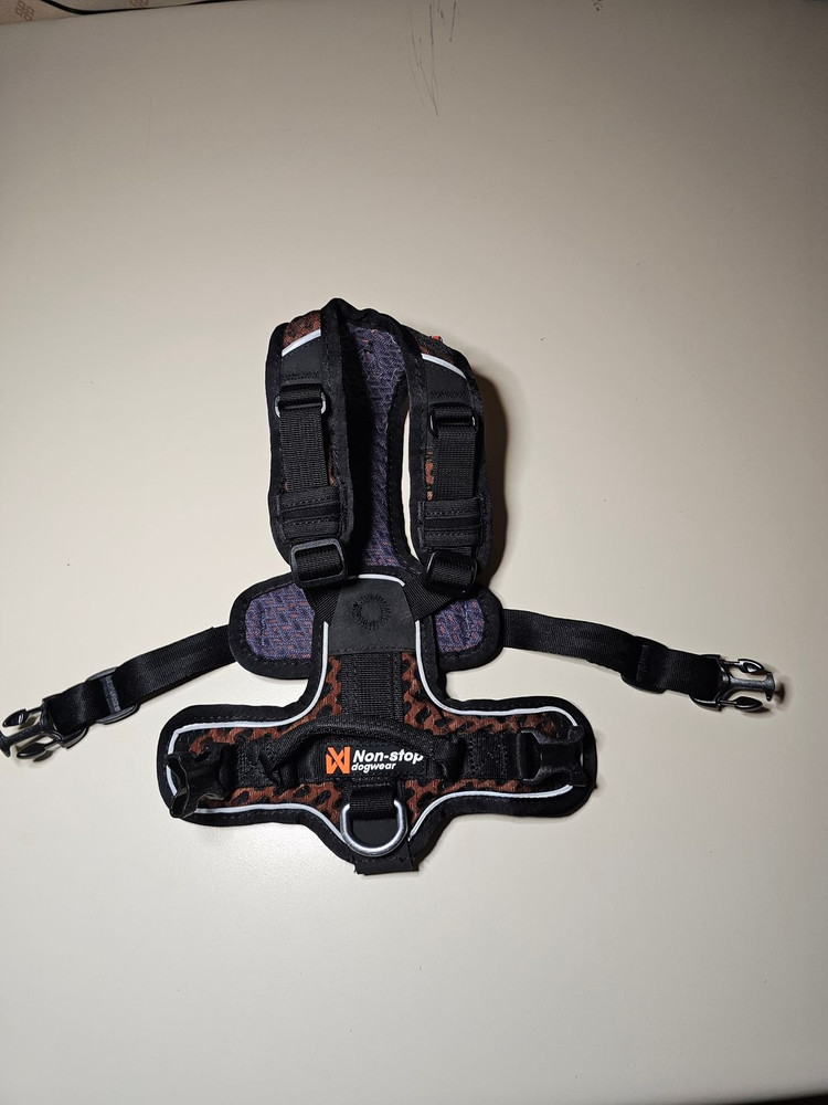 논스톱 도그웨어 락 하네스 s사이즈에요 사진 설명에서 알 수 있듯이 일반 저가형 하네스랑 소재, 품질, 마감 자체가 남달라요 가장 큰 장점은 헥시벤트 소재라 통풍, 빠른건조에 강하고 전체적으로 튼튼해요 그리고 튼튼한 재질에 비해 무게도 가벼워서 여름에 사용하기 좋을 거예요. 알루미늄 경량 링, 듀라플렉스 버클 등 재료 퀄리티가 좋아요 저희 아이는 가슴줄 하는걸 싫어해서 사용감은 적은 편이고 그래서 실제 받아보시면 하네스가 전체적으로 새것처럼 빳빳한 걸 알 수 있을 거예요. 원래 하네스 오래 쓰면 아이의 체구가 맞게 조금 부드러워지거나 구부려지는데 저는 많이 사용을 안해서 새것처럼 빳빳한 편이에요 다만 저희 강아지가 이걸 차고 땅바닥에 구른 적이 있어서 사진에서 볼 수 있듯이 버클 부분에 약간의 스크래치가 났을뿐 기능에는 전혀 문제 없어요. 이것 때문에 거의 새거지만 가격 많이 낮췄어요. 그래서 네고는 불가해요. 여름철 산책할 때 더위 많은 강아지한테 좋을 것 같아요. 몸통에 하네스 착용한 채로 물 뿌려도 금세 마르는 재질이라 도움이 될 거예요.