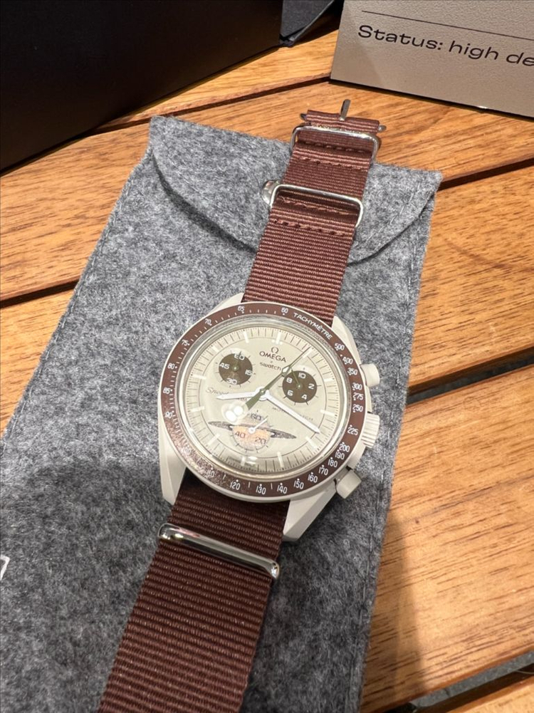 오메가 스와치 문스와치 토성 새턴 신품 판매합니다. 브라운 나토밴드가 고급스러움을 더합니다. 오메가와 스와치의 콜라보로 희소성 있는 제품입니다. 신품구매후 소장만 하던 제품입니다. 문스와치중에 유일하게 6시 방향에 토성이 제대로 그려진 제품으로 제품출시때도 메인 모델이었습니다. 풀구성이고요 어울릴만한 나토밴드도 함께 드립니다. 신품으로 구매하기 좋은 기회라 생각합니다.
